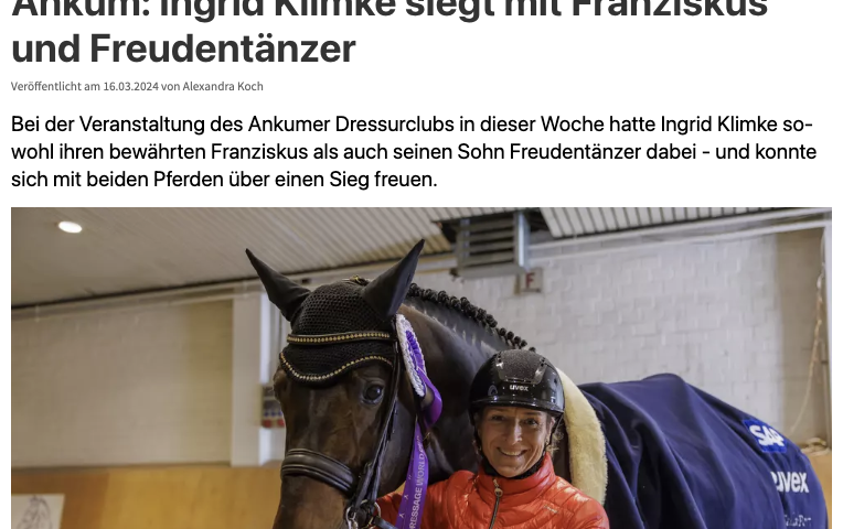 Ankum: Ingrid Klimke siegt mit Franziskus und Freudentänzer