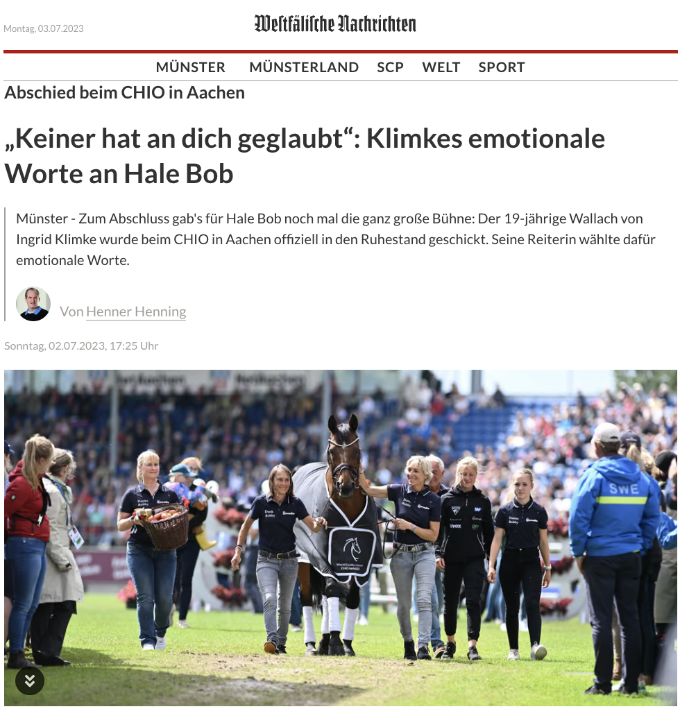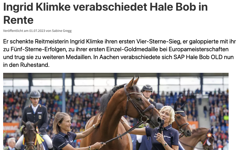 Ingrid Klimke verabschiedet Hale Bob in Rente
