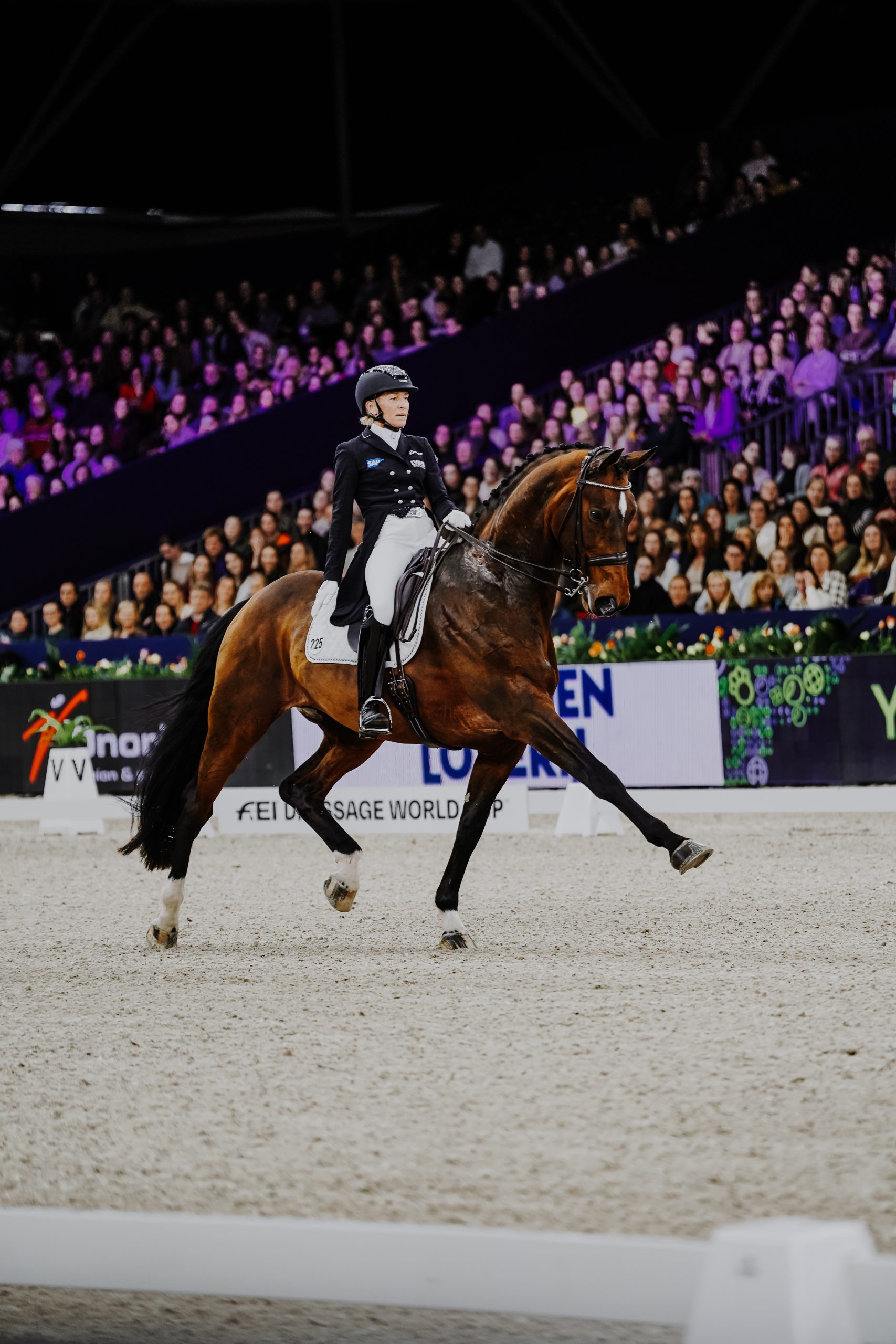 Ich habe mich direkt sehr wohl auf Ihm gefühlt und wir haben Ende November in Peelbergen unseren ersten Turnierstart gewagt. Die Premiere war mit einem Sieg im CDI3* Grand Prix geglückt und unser nächster Start war dann direkt Amsterdam, eine Etappe des FEI Dressage Worldcups. In einem sehr starken Starterfeld konnten wir im Grand Prix und auch bei unserer Kür Premiere viele weitere wertvolle Erfahrungen sammeln.