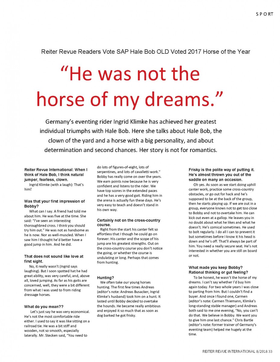 SAP Hale Bob OLD – Reiter Revue Pferd des Jahres 2017