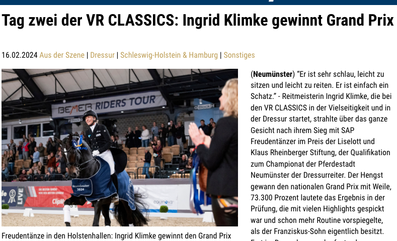 Tag zwei der VR CLASSICS: Ingrid Klimke gewinnt Grand Prix